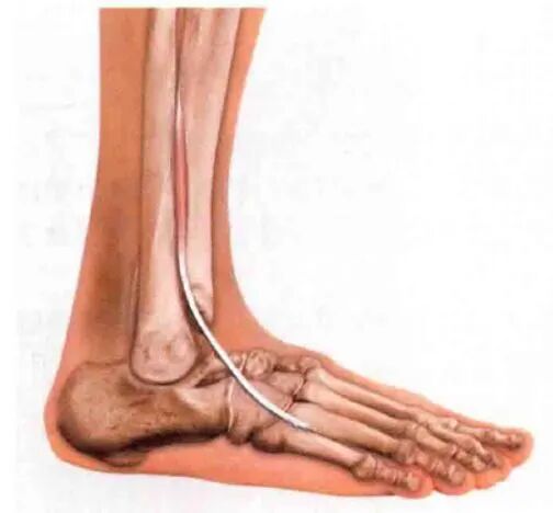 由于此肌纤维向下延伸过长,当牵拉肌纤维向距骨沟时,可造成创伤。