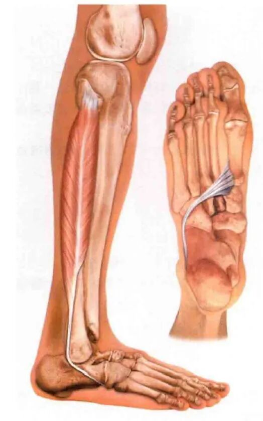 从止点就可以看出来,它有助于支撑足部内侧纵弓,起着抬高足内侧弓的杠杆作用并限制或并控制旋前。