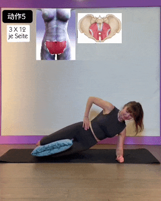 呼气,提盆底肌,夹抱枕 -