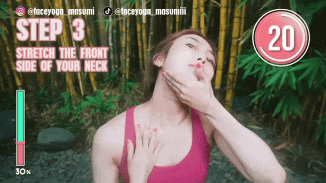 每组按摩 20-30 秒,每天做 3 组 注意:避免过度用力按压导致皮肤泛红,按摩时可以搭配润肤产品减少对皮肤的拉扯。