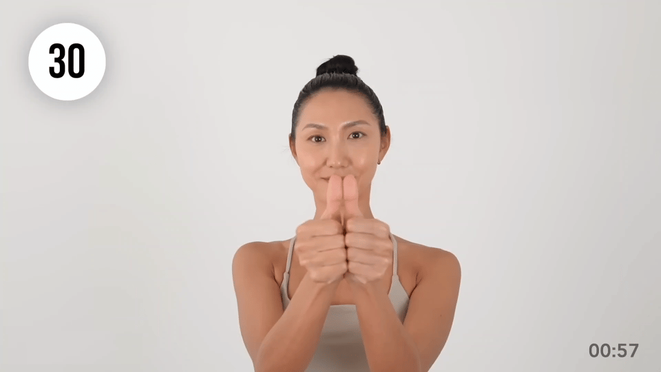 保持按压姿势2秒,然后抬起,重复30秒。