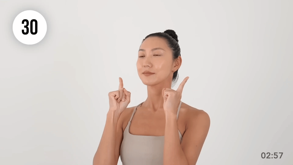 双手拇指放在下巴线条下方,轻轻按压;
