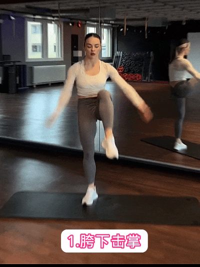 单腿尽量上抬,双手在胯下快速击掌,感受下腹的收紧感; -
