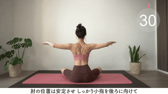 坐在垫子上,双臂向身体两侧平举,与肩同高,掌心向下; -