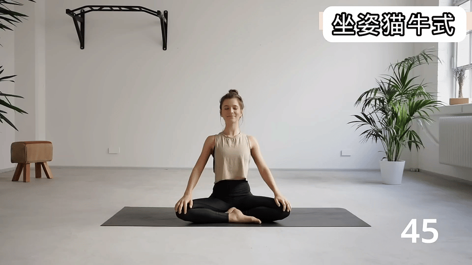 先给肩颈和腰背“热身”,缓解久坐带来的僵硬,放松后颈和后背的肌肉,让脖子能慢慢活动开来,为后面的动作打基础,练完会感觉肩颈不那么紧绷了。