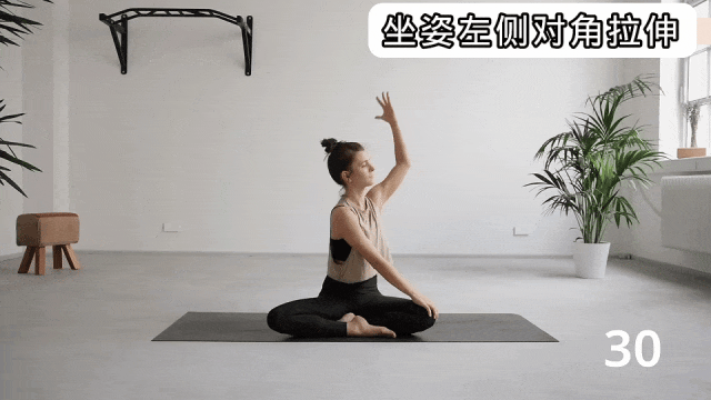 同动作3坐姿右侧对角拉伸,只是换成了左侧。