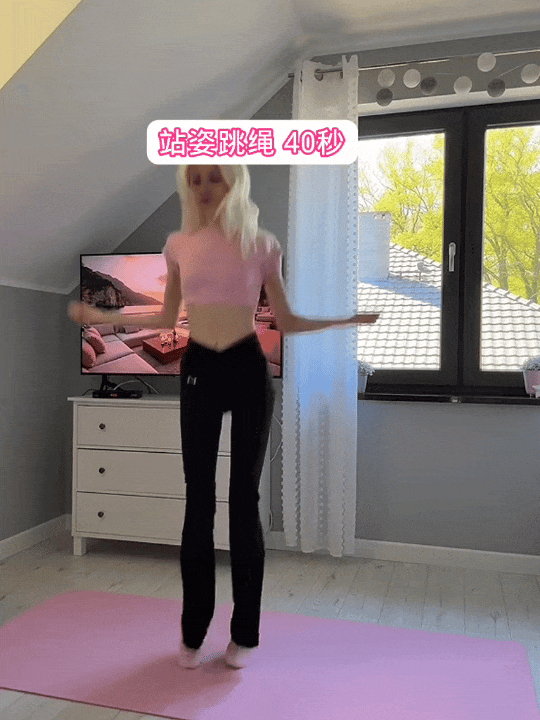 节奏适中,连贯跳跃,每组重复30秒。