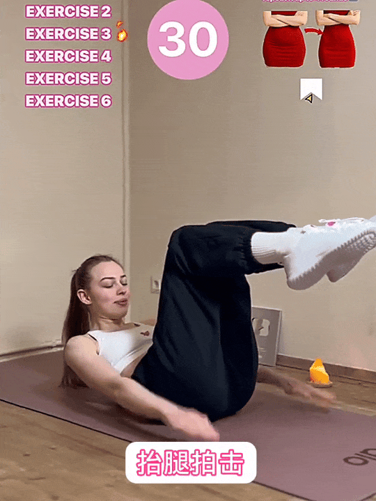 动作3:抬腿拍击(全身燃脂,瘦小腹)