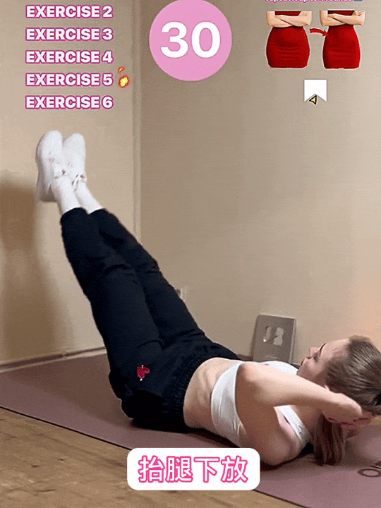 动作5:抬腿下放(加速燃脂,专攻顽固肚腩)