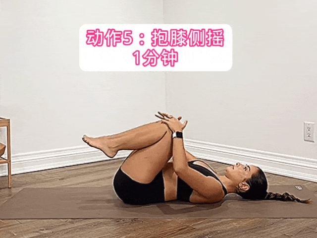 全程腰背贴紧地面,抱膝时不用太用力,舒服就好。