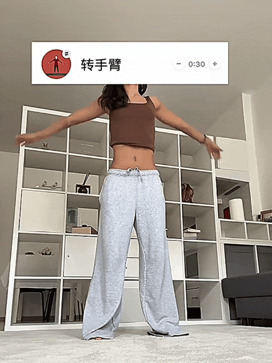 环绕时,手臂不要抬太高,保持在肩膀两侧就好,避免肩膀受力过大;
