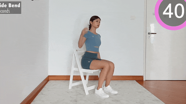 动作放慢,拉伸时感受侧腰和肩颈的发力感。