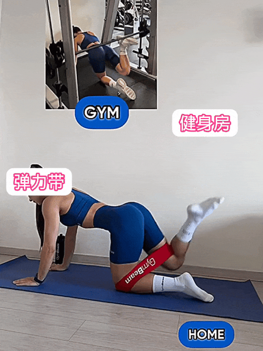 很多健身房的练臀动作,我们用一根弹力带增加阻力,就能在家完美复刻,可以代替健身房的器械,但是效果一点都不打折。