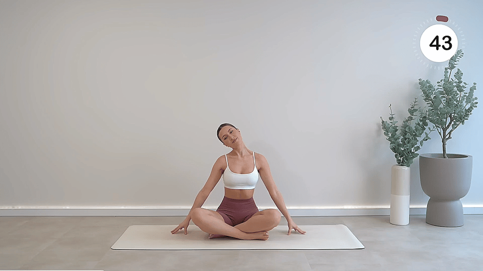 全程动作轻柔缓慢,感受颈部肌肉拉伸,持续45秒。