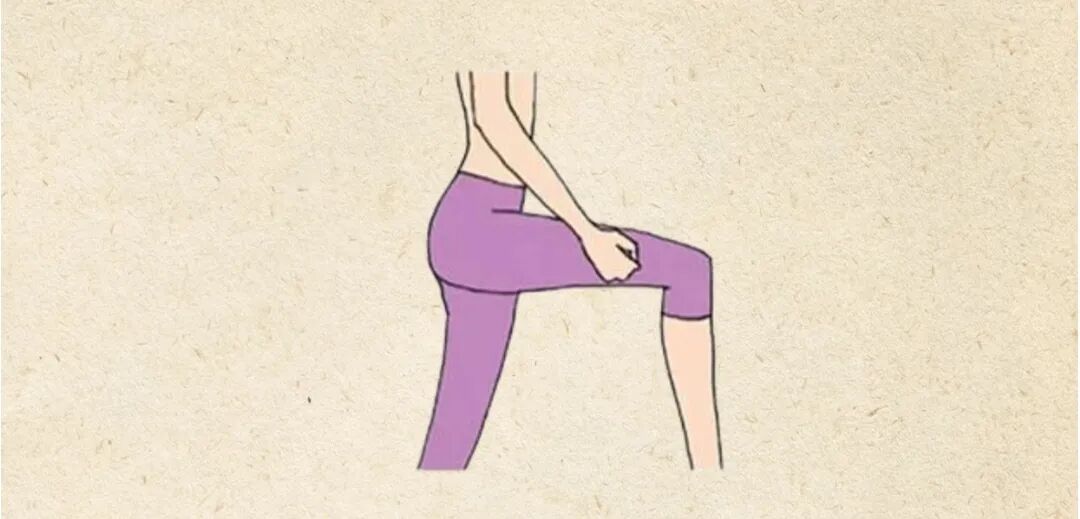 从大腿外侧根部开始,自上而下轻轻敲打至膝盖外侧;