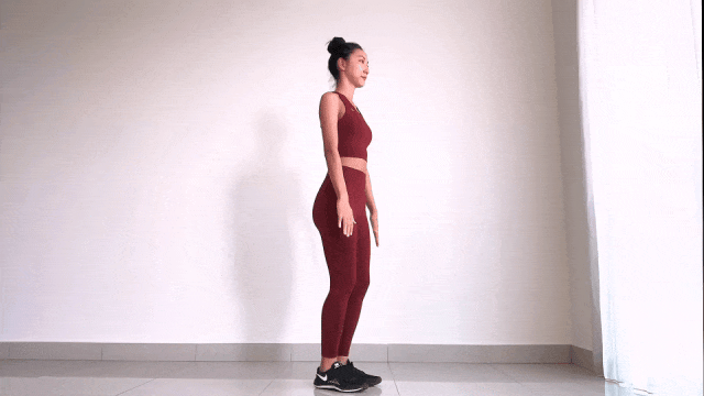 拉伸大腿后侧,视觉上拉长双腿,显高显瘦。