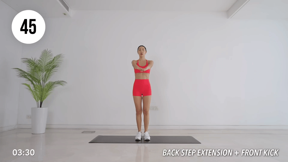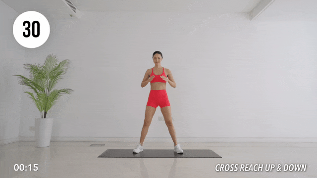 够不到也没关系,换右腿练习,左右交替练30秒。
