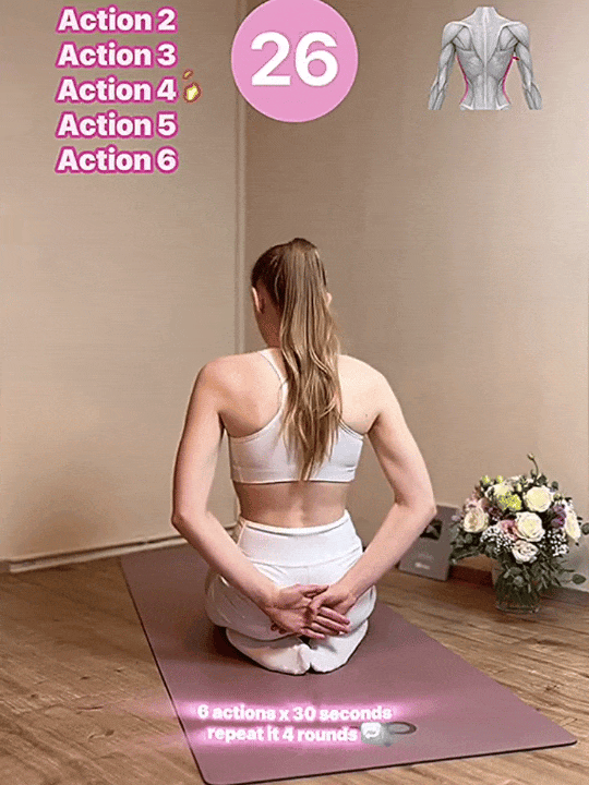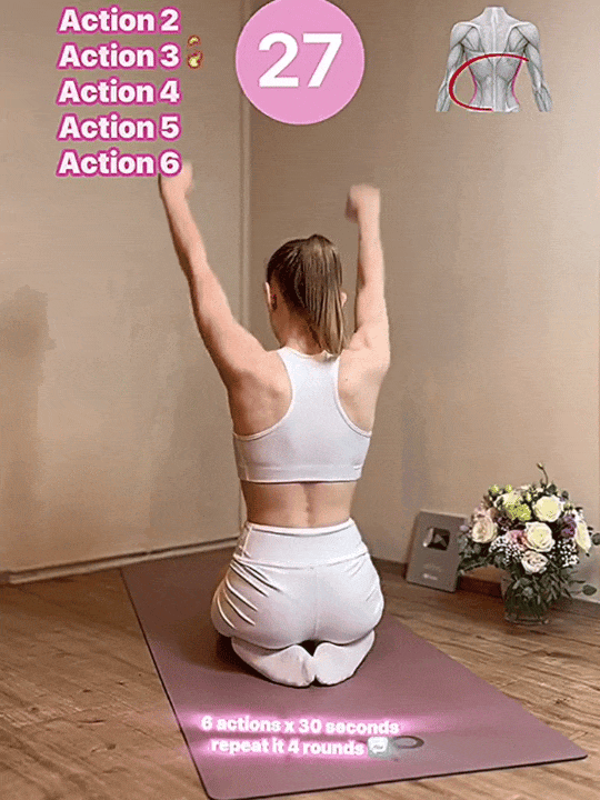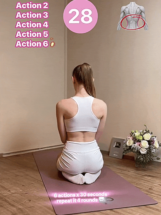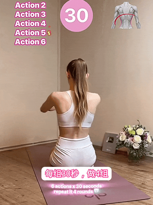 向后扩胸到极限位置停顿一下,这样收紧效果更好哦。