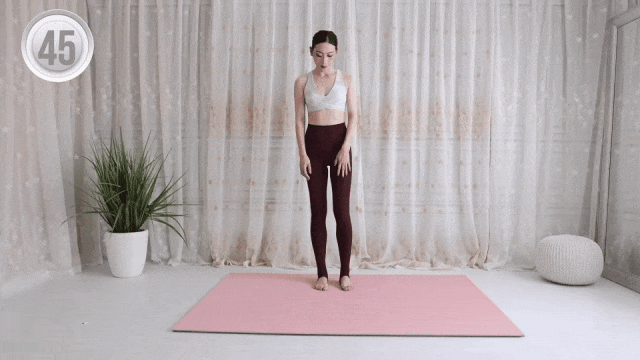 然后缓慢踮起脚尖,身体向上立,感受小腿收紧;