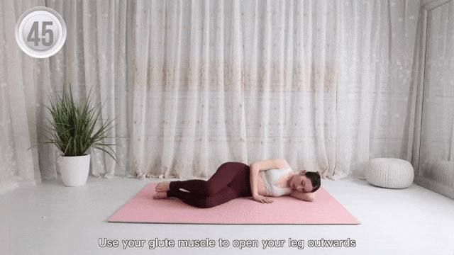上方膝盖像蚌壳一样,缓慢向上打开,臀部发力带动膝盖抬起;