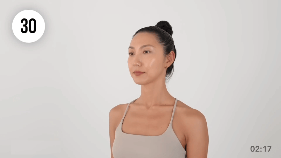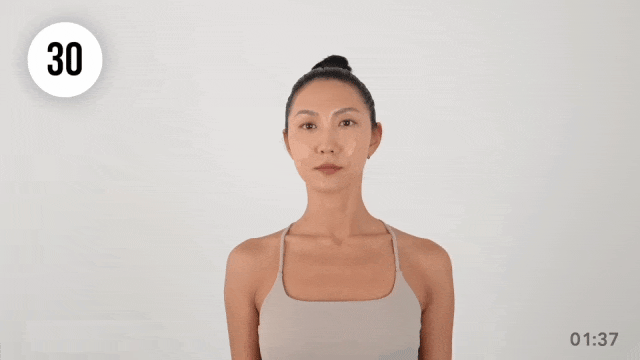 4. 重复亲吻动作,全程仰头不低头,30秒。