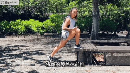 →或者把后面的膝盖弯曲、身体重量往下沉