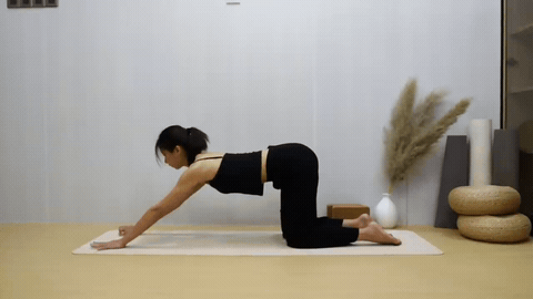 →来到四足跪姿、双手在肩膀正下方、膝盖在髋部正下方
