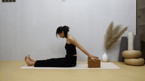 →两块瑜伽砖横着放在身后、距离与肩同宽