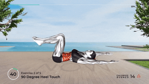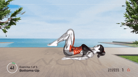 → 呼气时,双腿抬起至垂直,与地面成90度