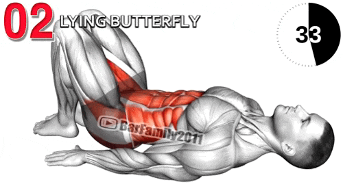 → 膝盖向两侧自然打开,双手放身体两侧或轻放在小腹上