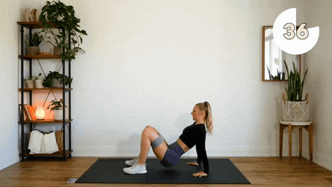 → 保持仰卧姿势,双腿屈膝,弹力带套在大腿上方