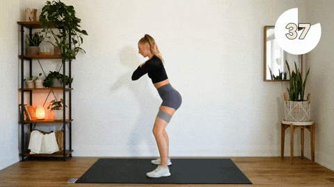 → 做完2次脉冲后,站起到顶点时臀部用力夹紧停顿1秒,然后再下蹲