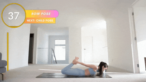→ 保持3-5个呼吸,每次吸气时,脚更用力向后蹬,胸口抬更高