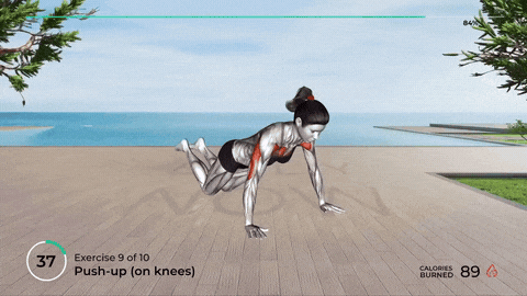 → 呼气时,用胸肌和手臂力量推起身体回到起始位。