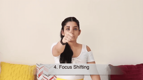 → 快速转移视线,看右手拇指尖,聚焦2秒。可以轻微晃动拇指帮助眼睛捕捉焦点