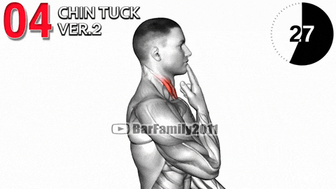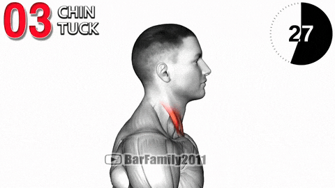 → 此时颈后上方会有拉伸感,颈前深层肌肉在收紧工作