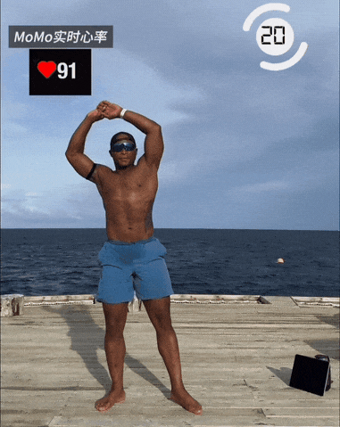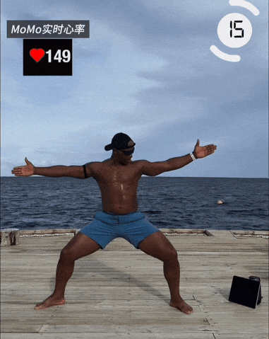 → 呼气时,髋部和膝盖同时伸直站起,双臂回到头顶上方