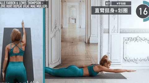 → 双臂向前伸直,双腿向后伸直并拢