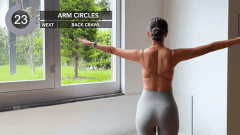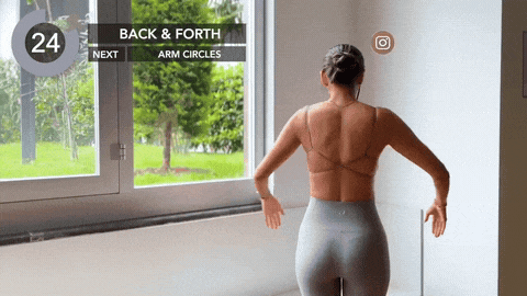 → 呼气时,双臂同时向前摆动至肩膀高度