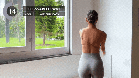 → 呼气时右臂前伸,吸气时换左臂前伸,左右交替连续进行