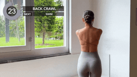→ 双臂在身体前方,模拟游泳自由泳的划臂动作