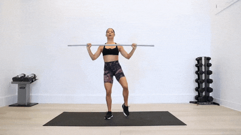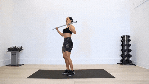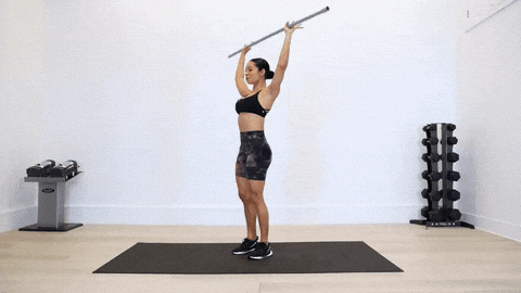 关键:手臂举着棍子会累,但要坚持,这能同时训练肩膀和核心稳定性