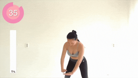 → 双脚与髋同宽站立,上半身俯身,髋关节轻微向后推