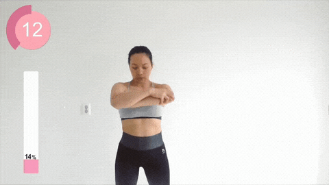→ 双脚与肩同宽站立,双臂在胸前交叉,手臂与地面平行