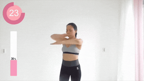→ 吸气时,交替对侧,左手肘去触碰,右手肘上方5cm左右位置