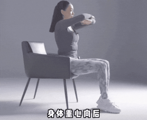→ 同样坐在椅子前1/3处,双手抱头,或手指轻触耳后,手肘向两侧打开