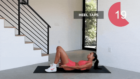 → 呼气时,肩胛骨微微离地,同时一侧手沿地面向同侧脚跟滑动。感受侧腰收缩