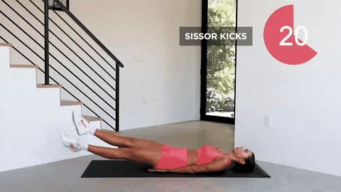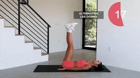 → 全程下腹持续收紧,腰部不能离开地面。