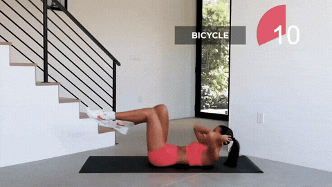 → 吸气时换边,动作连贯如同蹬自行车。