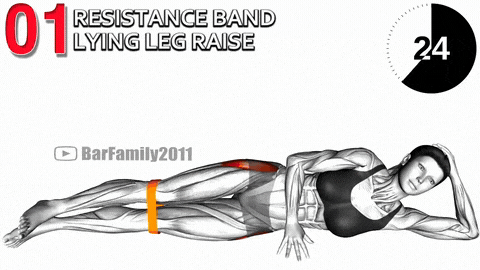 → 吸气时慢慢伸直腿回到起始位,但不完全放松,保持弹力带张力。